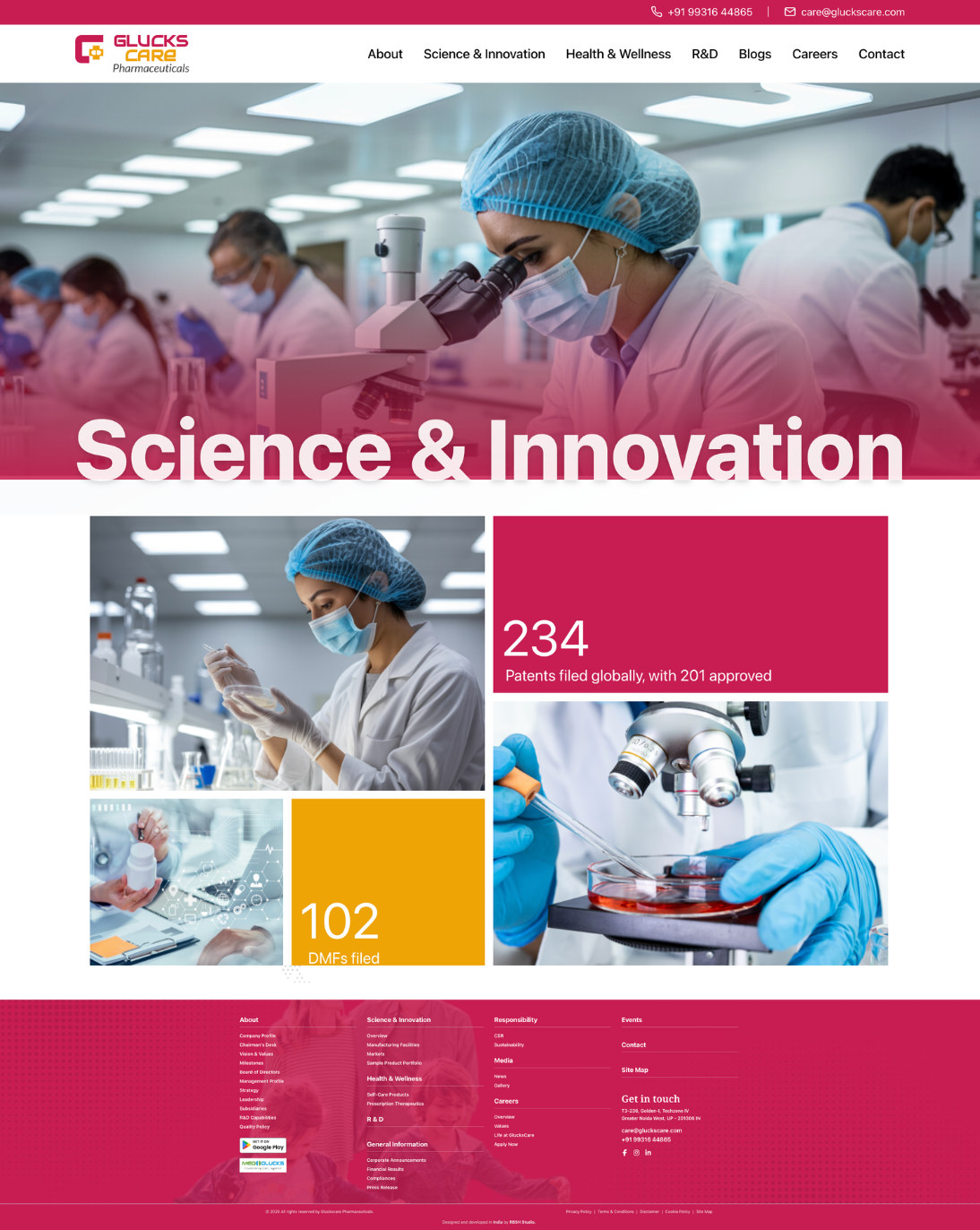 Innovative pharmaceutical website showcasing research excellence and healthcare advancements.
