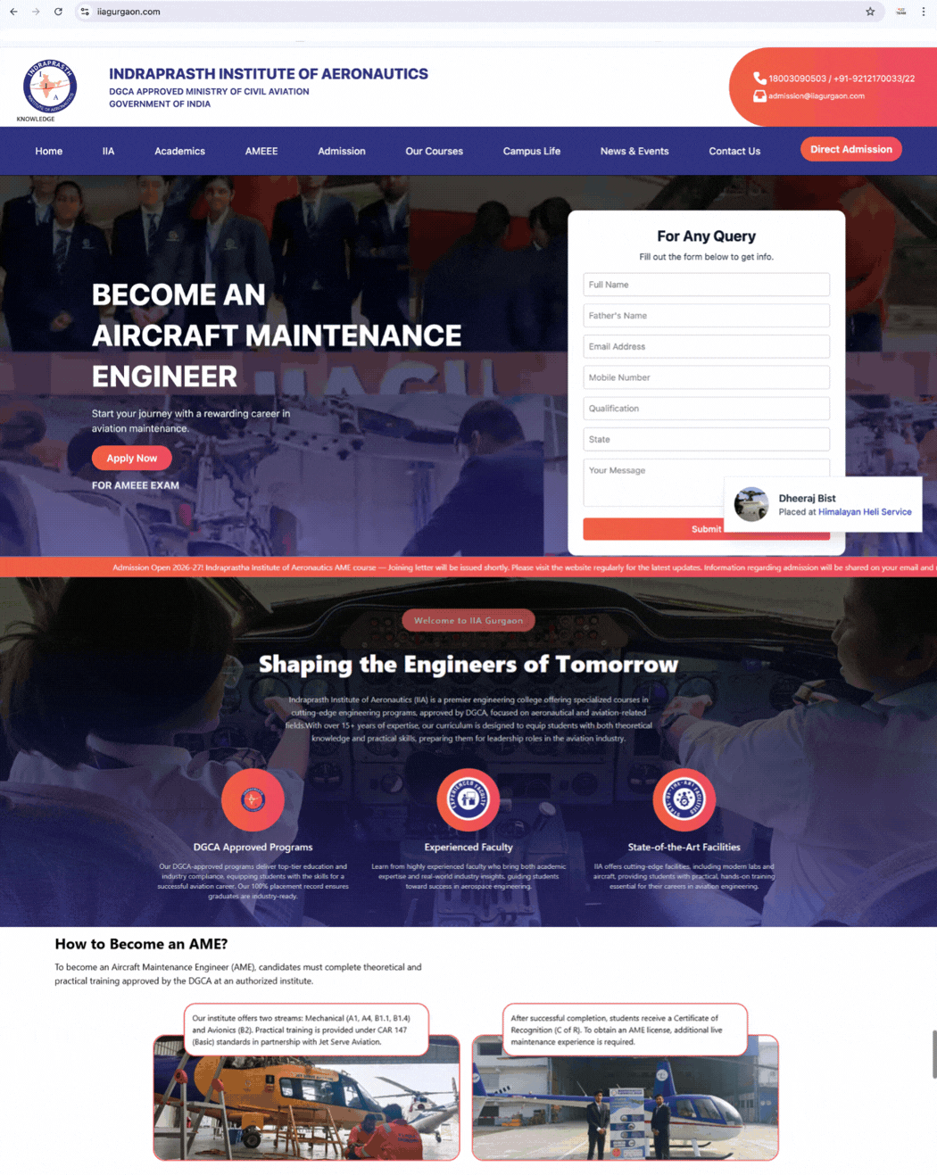 Modern aviation institute website streamlining admissions and inspiring engineers.